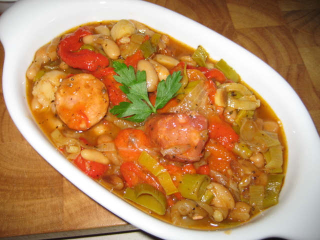 Pasulj kuhati dok ne bude mekan, a zatim ga procijediti. Poriluk pirjati na ulju dok ne bude mekan.