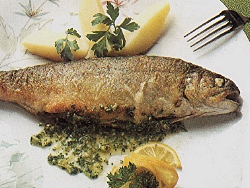 Pastrmka 4 komada, Brasno 20 gr, ulje 1 dcl, Margarin 20 gr, Pavlaka 1 dcl, Zacini (mesavina), so, biber, sok limuna