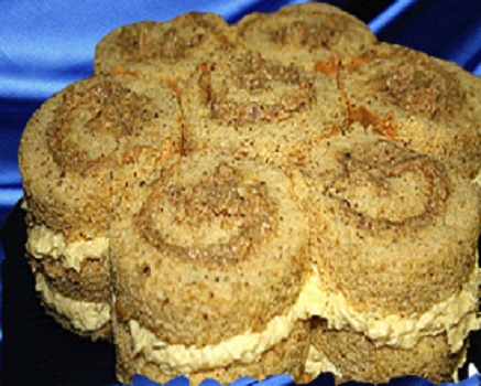 10. Na tanjur za torte posložite 7 komada izrezanog rolada na način da jedan bude u sredini te šest komada oko njega.(oblik cvijeta)