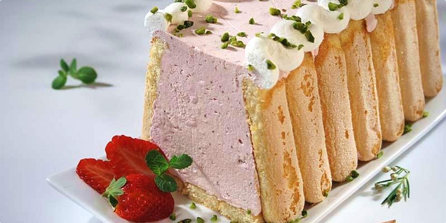 3 Duguljasti kalup obložite pek papirom, na dno izlijte malo kreme i uz stranice kalupa složite piškote. Zatim u sredinu izlijte ostatak kreme i stavite u hladnjak da se stisne.