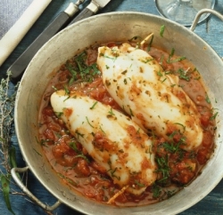 Za umak pirjajte paradajz s bijelim lukom, podlijevajte sokom od bijelog grožđa.
