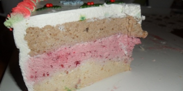 Torta se filuje: kora + 2/3 fila + kora. Premaže se ostalim filom i umućenim šlagom.