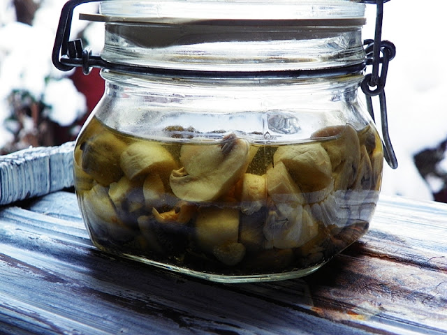 Kad su sve gljive prokuvane, zaliti ih sa vrelom tecnoscu (tecnost ih mora prekriti) pa tegle dobro zatvoriti i ostaviti da se hladi.