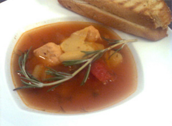 U riblji fond po mogućstvu od glava grdobe (zbog intezivnog ukusa) dodavati sukcesivno rendano povrće (krupno) i u startu dodati gore navedenu komadinu riba kao i školjke, gambore i škampe.Supa treba da bude jakog intezivnog ukusa sa neprenaglašenom jako crvenom bojom vrlo pikantna i gusta (odnos fonda, povrća i ribe) strogo voditi računa da se meso ne raspadne, kuvati na tihoj vatri dok povrće i meso budu skladno ukuvani.