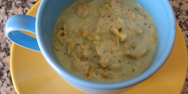 3 U zdjelicu za doručak stavite kornfleks, mljevene sjemenke lana i prelijte zelenim frapeom.