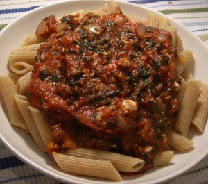 Posna pasta sa crvenim sosom i pečurkama