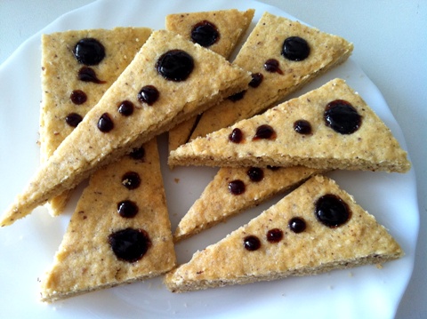 Marmeladu izmješajte u glatku masu, ako treba malo je zagrijte i po potrebi procijedite od komadića, pa je stavite u vrećicu s malim otvorom i posložite točkice i napunite udubljenje u keksićima.